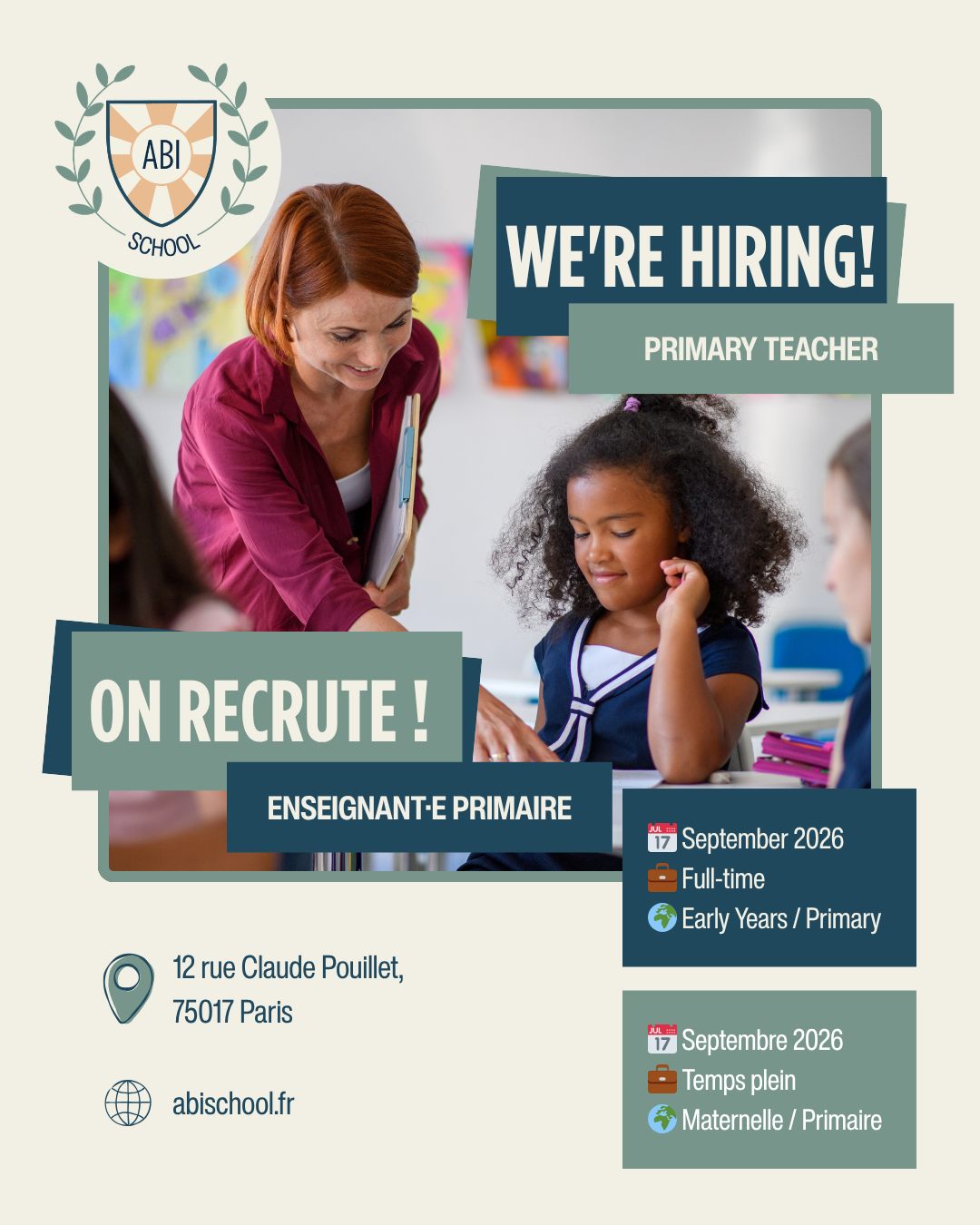 ABI School is looking for a passionate educator to join our innovative bilingual team in Paris.