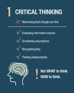 ✓ Critical thinking (not WHAT to think, HOW to think)