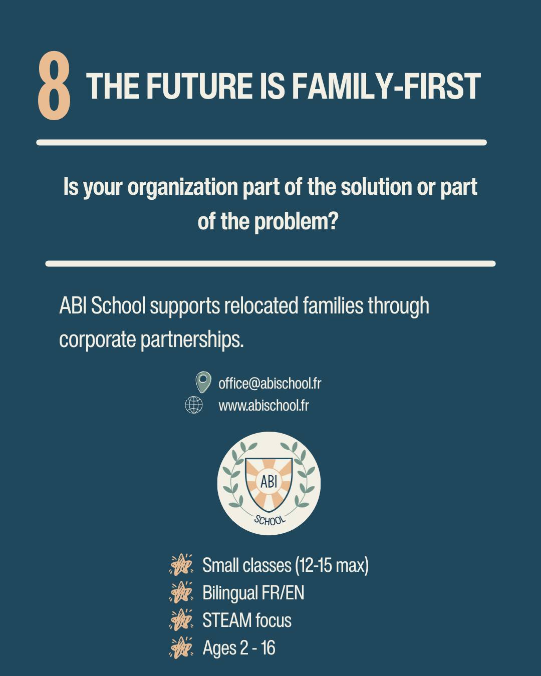 And if you are ready to become part of the family-first future of relocation, ABI School partners with companies to address the 41% of relocations failing due to children's issues statistic.